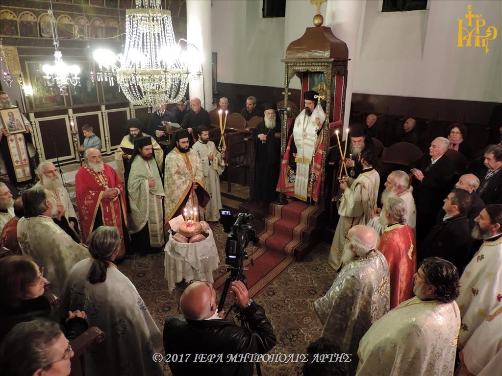 Την Κυριακή 26 Νοεμβρίου 2017, το απόγευμα στον Ναό των Εισοδίων Θεοτόκου-Αγίου Μερκουρίου, στο Επισκοπείο Άρτης ετελέσθη πολυαρχιερατικός Εσπερινός, επί τη μνήμη του Αγίου Δαμασκηνού του Στουδίτου, χοροστατούντος του Σεβασμιωτάτου Μητροπολίτου Καρπενησίου κ. Γεωργίου και συγχοροστατούντων των Σεβασμιωτάτων Μητροπολιτών πρώην Άρτης κ. Ιγνατίου και Άρτης κ. Καλλινίκου.