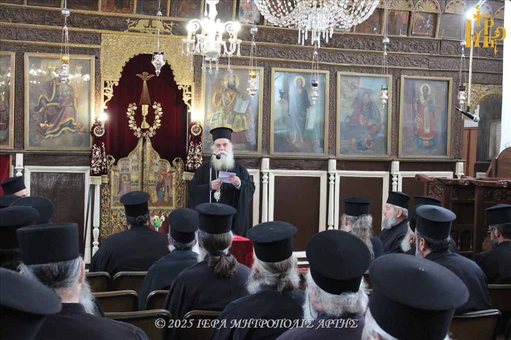 Το πρωΐ της Πέμπτης 16 Οκτωβρίου 2025, πραγματοποιήθηκε Ιερατική Σύναξη για τους Κληρικούς της Ιεράς Μητροπόλεως Άρτης, στον Ιερό Ναό Εισοδίων της Θεοτόκου - Αγίου Μερκουρίου, στο Επισκοπείο.