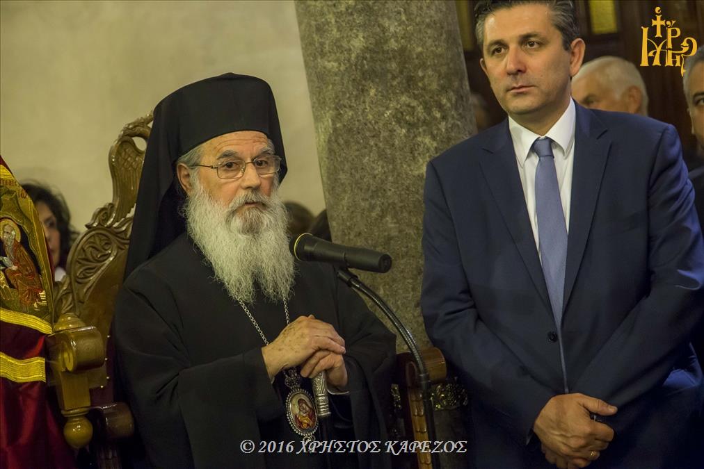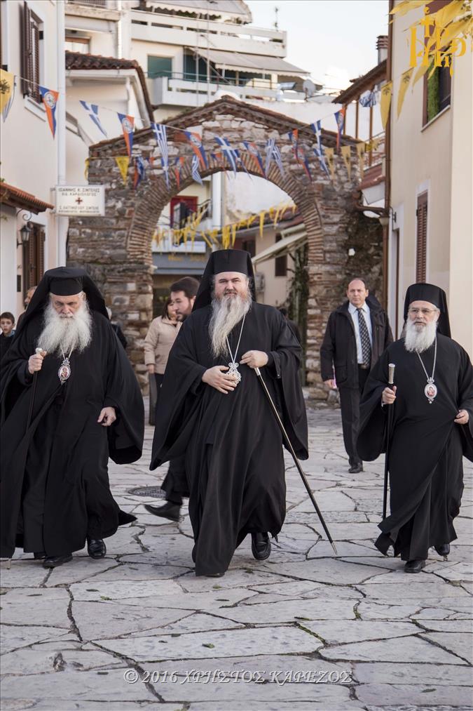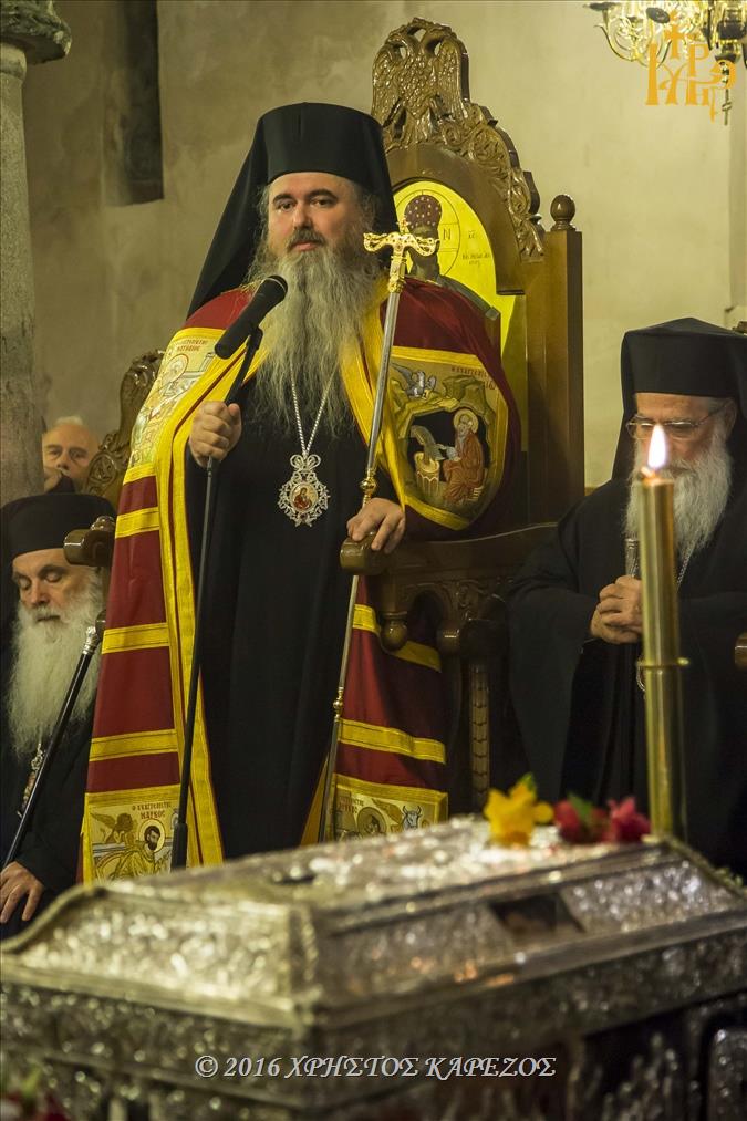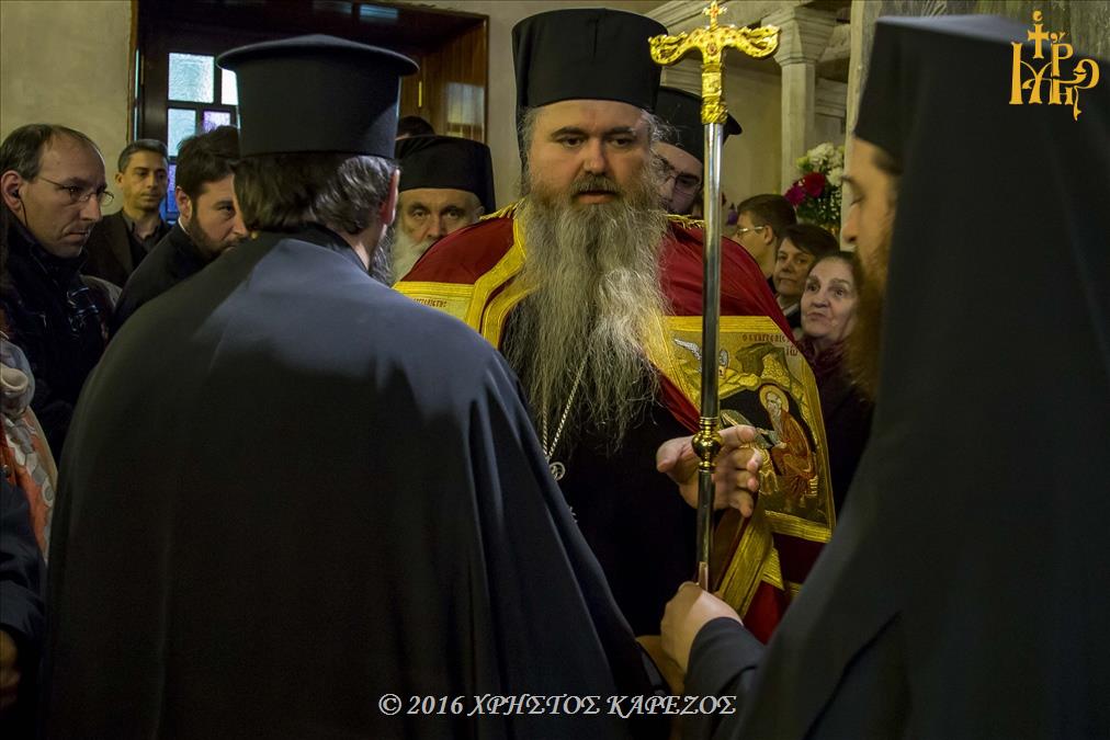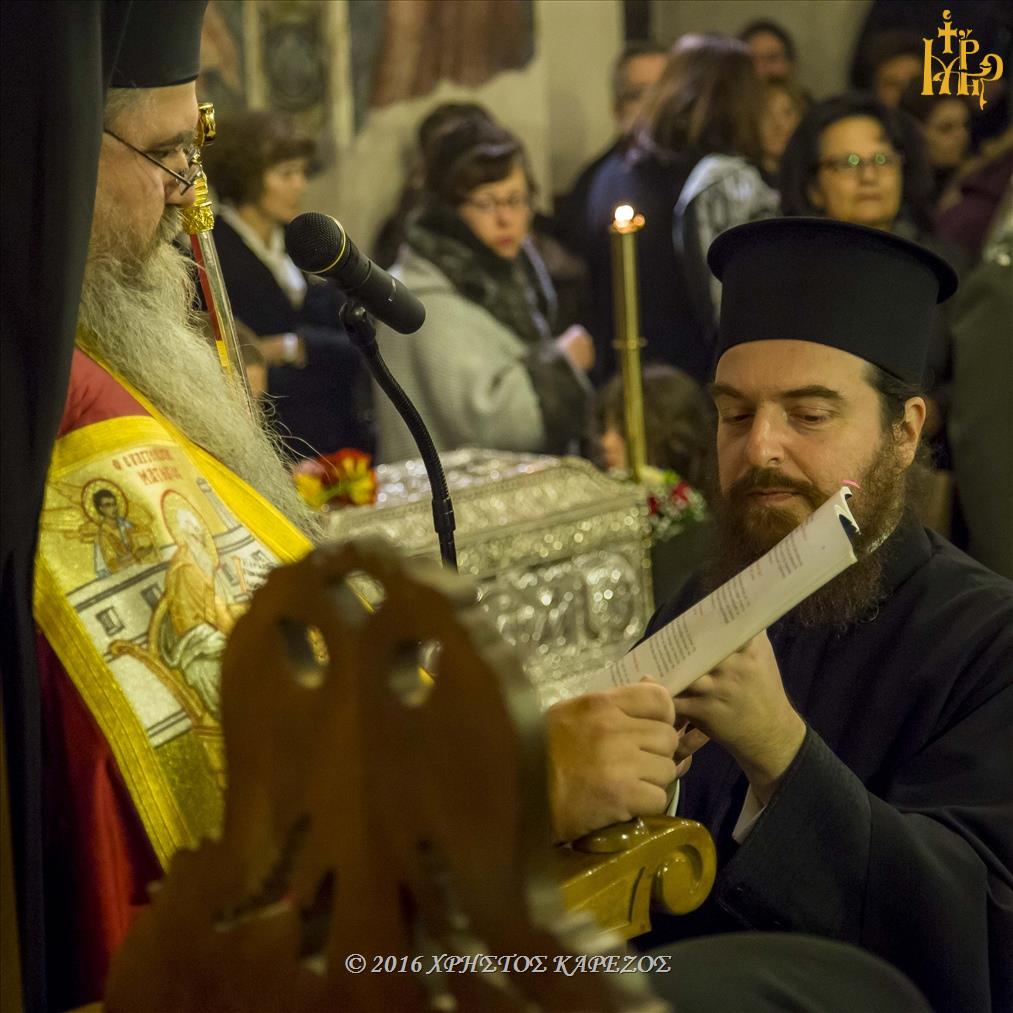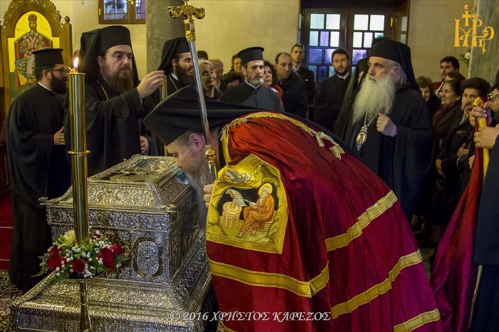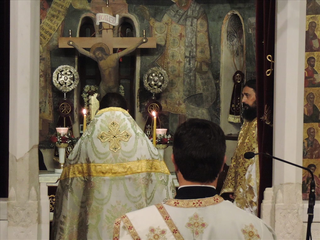 Το απόγευμα της Πέμπτης, χοροστατούντος του Σεβασμιωτάτου Μητροπολίτου Νέας Κρήνης και Καλαμαριάς κ. Ιουστίνου και συγχοροστατούντων του Σεβασμιωτάτου Μητροπολίτου Αργολίδος κ. Νεκταρίου και του Σεβασμιωτάτου Ποιμενάρχου μας κ. Ιγνατίου, εψάλη η Ακολουθία του Εσπερινού. Ο χοροστατών Μητροπολίτης δεν έκρυψε την συγκίνησή του που ως νέος Ιεράρχης της Ελλαδικής Εκκλησίας, στο ξεκίνημα της Αρχιερατικής του πορείας και διακονίας, η Χάρις του Θεού τον έφερε προσκυνητή στη μνήμη της Αγίας Θεοδώρας, της Βασίλισσας με τον πολυτάραχο και πλούσιο σε πνευματικά μηνύματα βίο, στον οποίο και αναφέρθηκε επιγραμματικά. Ευχαρίστησε δε το Σεβασμιώτατο Ποιμενάρχη μας δια την αγάπη και τιμή που του έκανε να είναι μέτοχος της λαμπρής πανηγύρεως, σε μια Μητρόπολη που αγαπά και έχει δεθεί ιδιαιτέρως κατά το παρελθόν τόσο με τους Κληρικούς όσο και με τον ευσεβή λαό της.