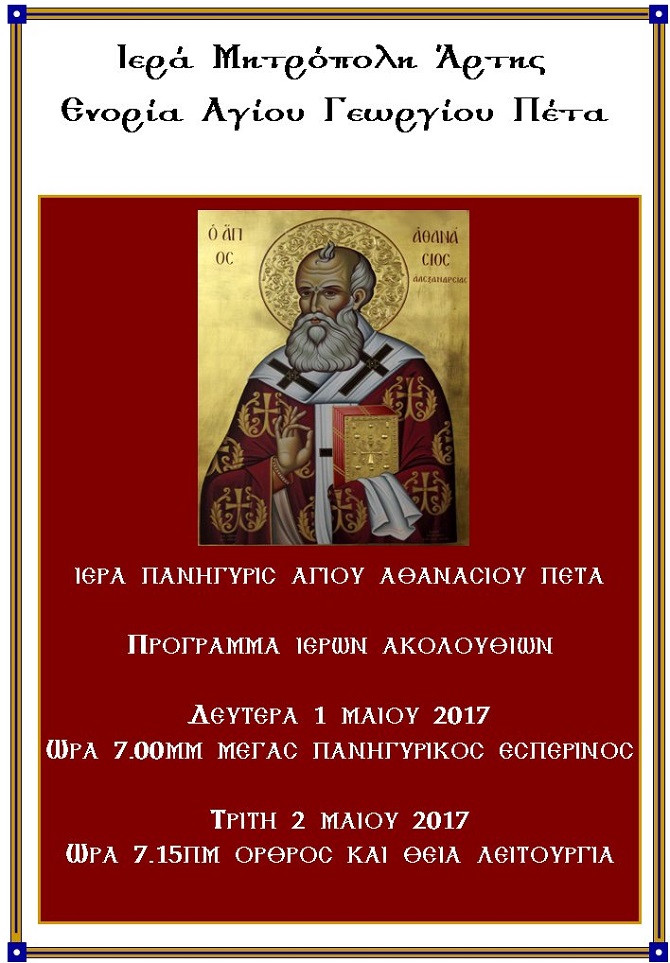 Πανήγυρις Αγίου Αθανασίου στην Ενορία Αγίου Γεωργίου Πέτα