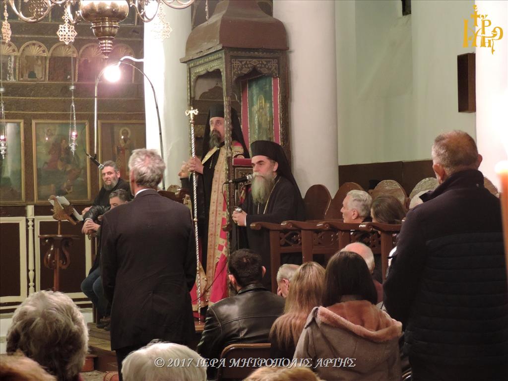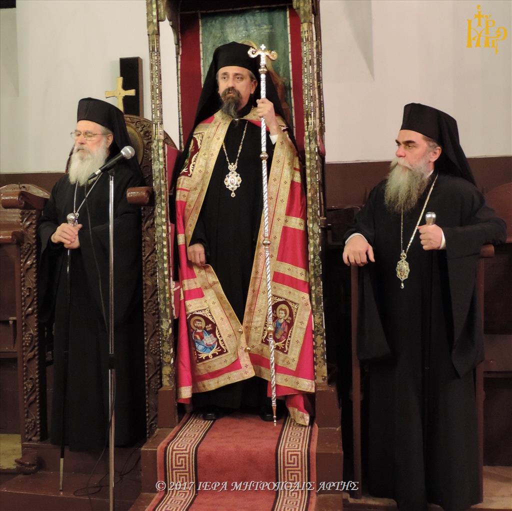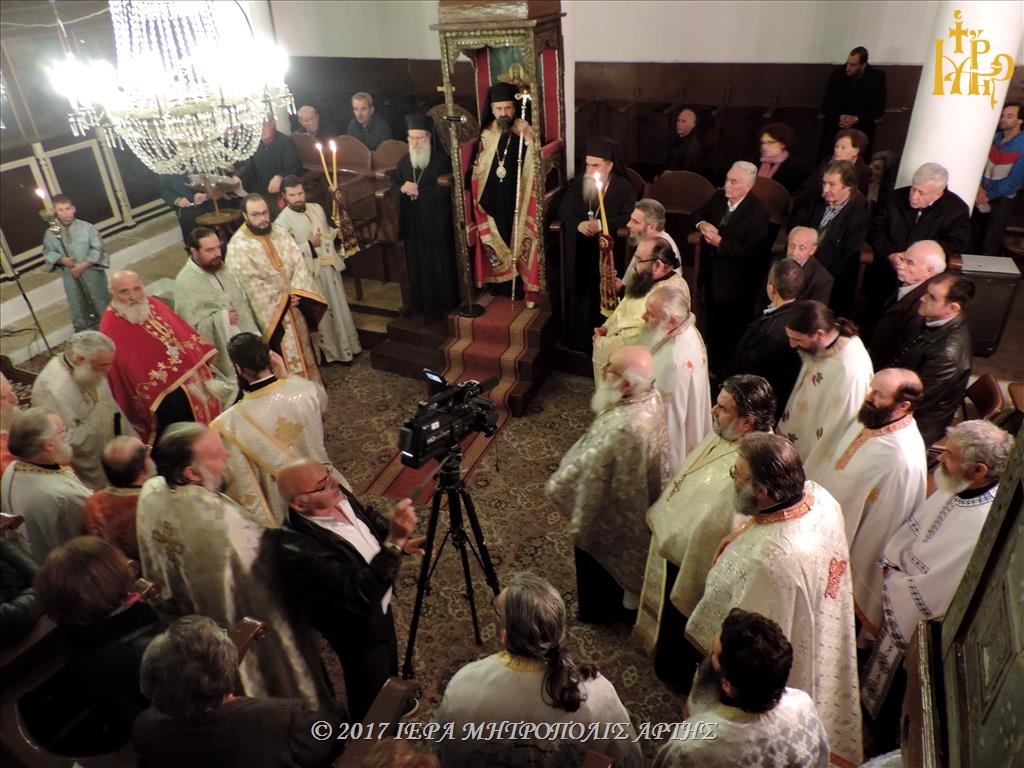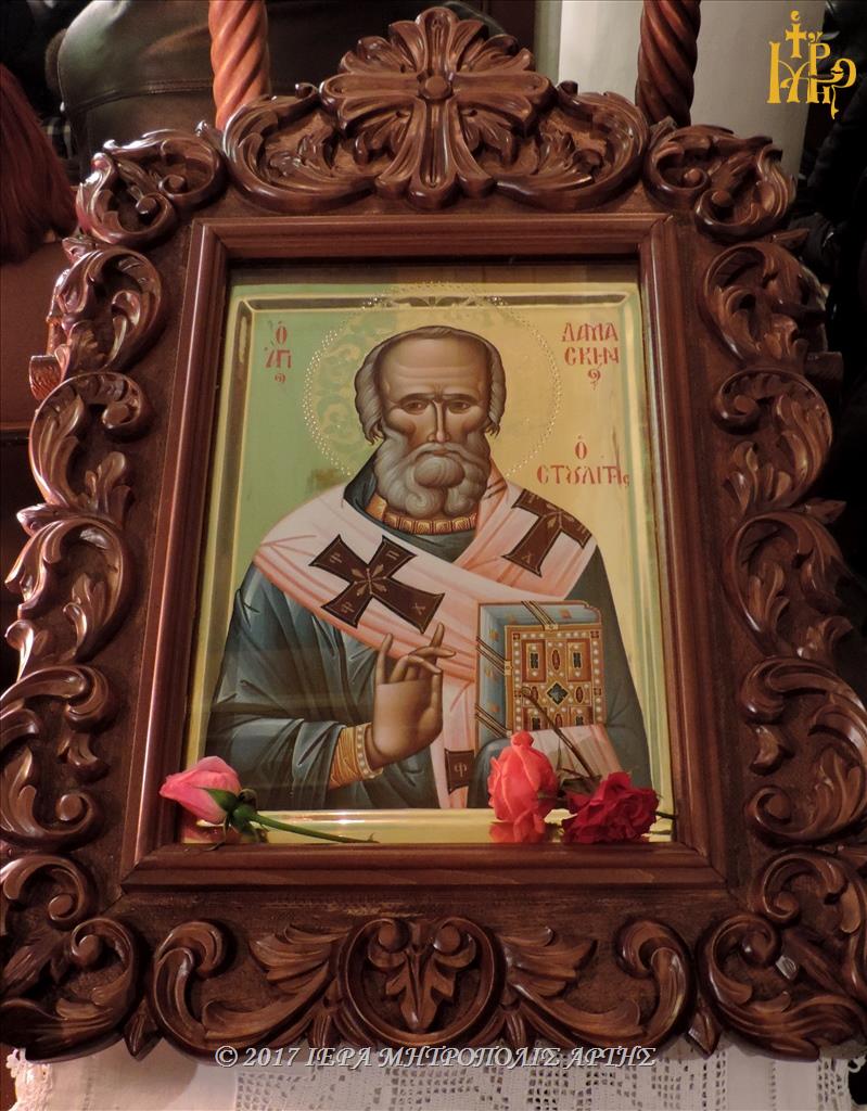 Την Κυριακή 26 Νοεμβρίου 2017, το απόγευμα στον Ναό των Εισοδίων Θεοτόκου-Αγίου Μερκουρίου, στο Επισκοπείο Άρτης ετελέσθη πολυαρχιερατικός Εσπερινός, επί τη μνήμη του Αγίου Δαμασκηνού του Στουδίτου, χοροστατούντος του Σεβασμιωτάτου Μητροπολίτου Καρπενησίου κ. Γεωργίου και συγχοροστατούντων των Σεβασμιωτάτων Μητροπολιτών πρώην Άρτης κ. Ιγνατίου και Άρτης κ. Καλλινίκου.