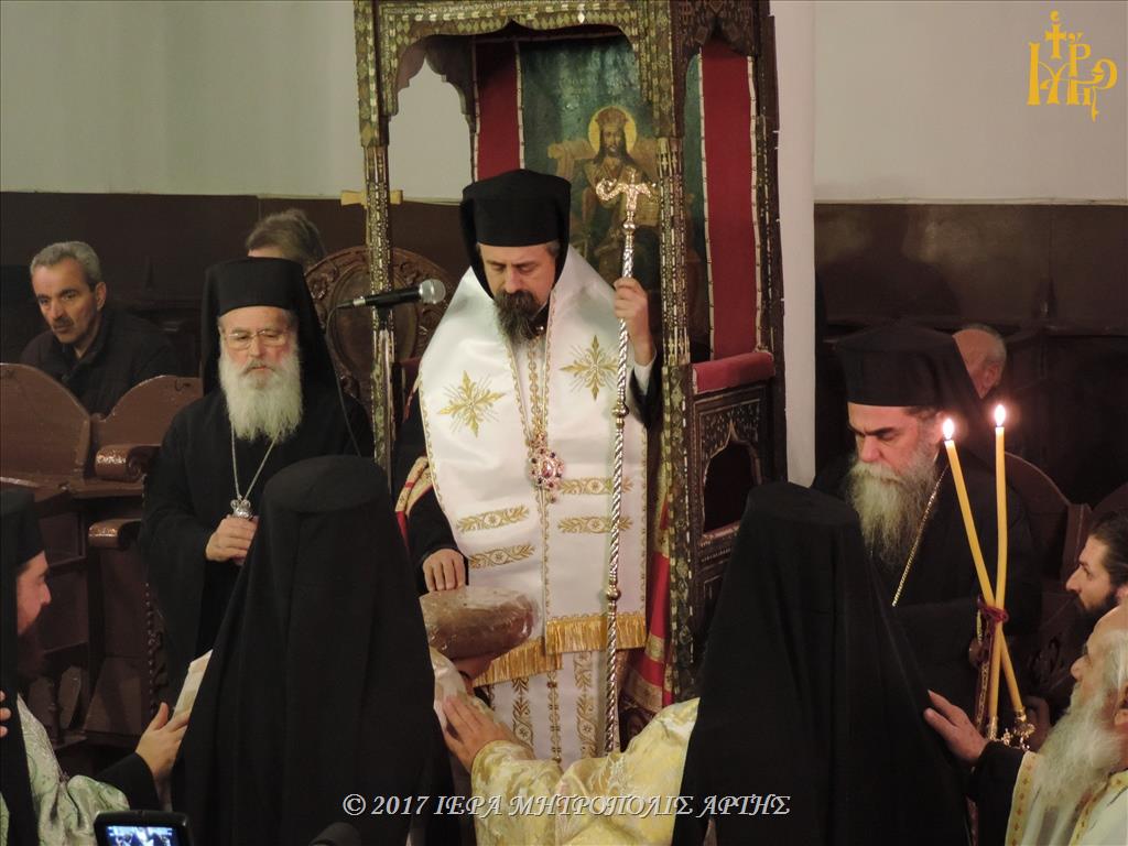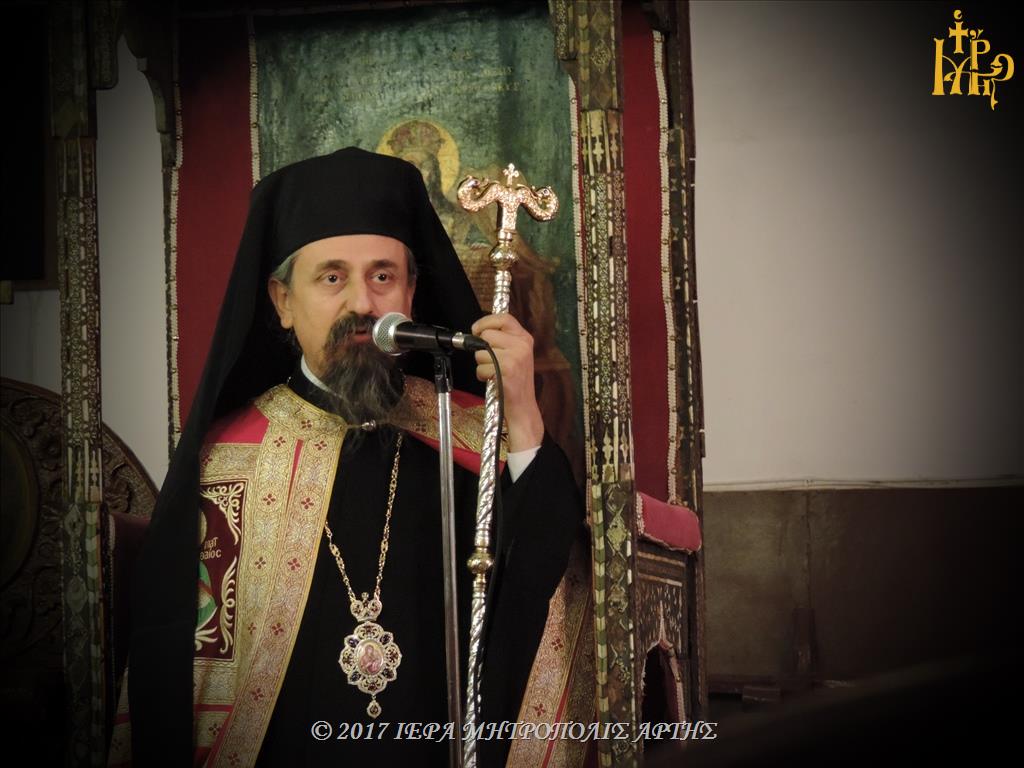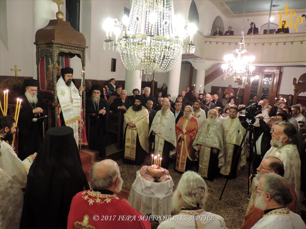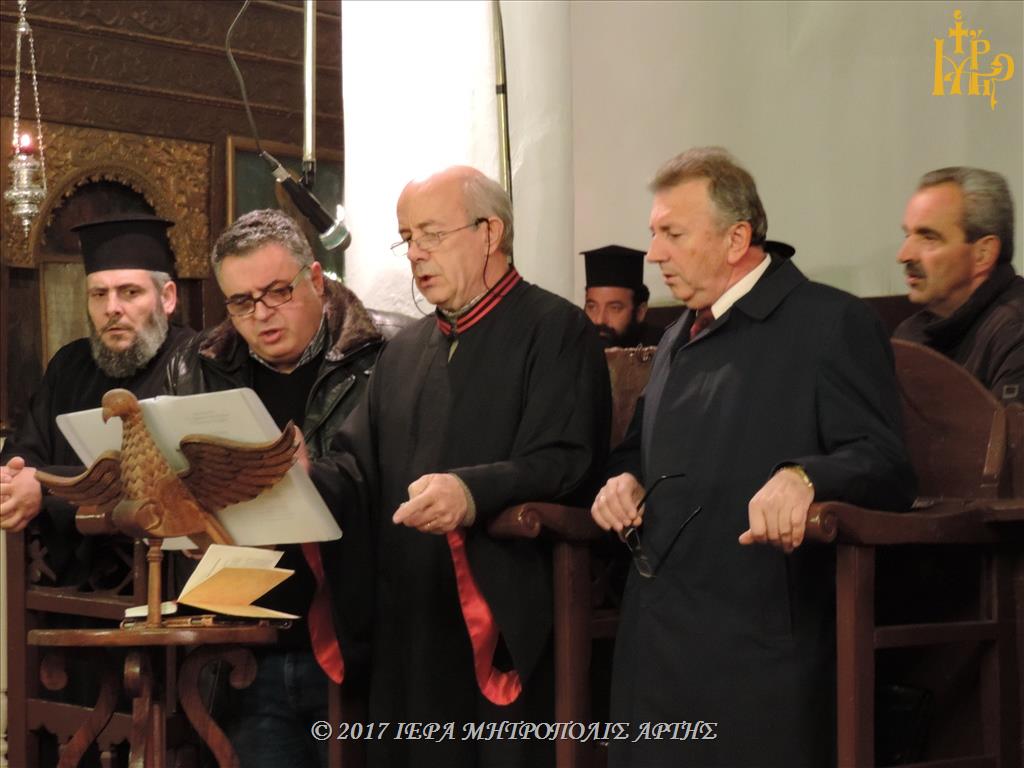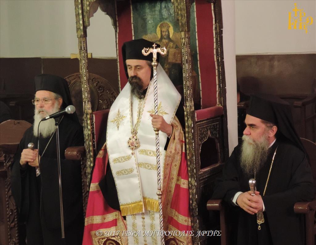 Την Κυριακή 26 Νοεμβρίου 2017, το απόγευμα στον Ναό των Εισοδίων Θεοτόκου-Αγίου Μερκουρίου, στο Επισκοπείο Άρτης ετελέσθη πολυαρχιερατικός Εσπερινός, επί τη μνήμη του Αγίου Δαμασκηνού του Στουδίτου, χοροστατούντος του Σεβασμιωτάτου Μητροπολίτου Καρπενησίου κ. Γεωργίου και συγχοροστατούντων των Σεβασμιωτάτων Μητροπολιτών πρώην Άρτης κ. Ιγνατίου και Άρτης κ. Καλλινίκου.