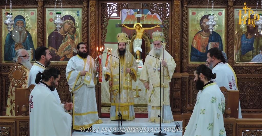 Στην Θεία Λειτουργία προεξήρχε ο Μητροπολίτης Σισανίου και Σιατίστης κ. Αθανάσιος συλλειτουργούντος του Μητροπολίτου Άρτης κ. Καλλινίκου.