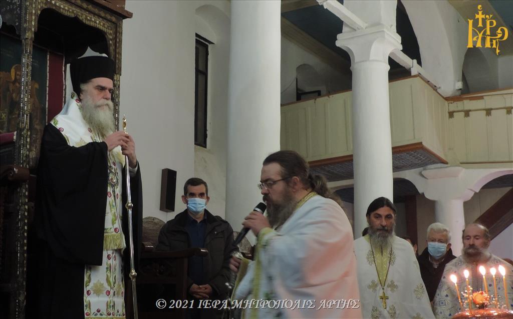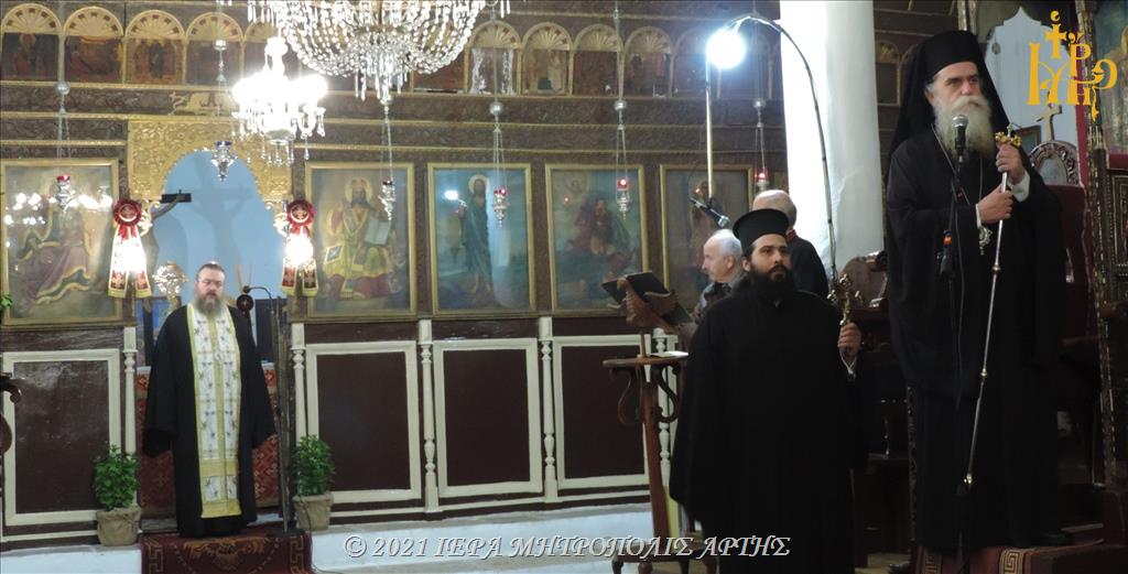 Το Σάββατο 20 Νοεμβρίου 2021, το απόγευμα, στο ευρισκόμενο στον αύλειο χώρο του Επισκοπείου Άρτης, πανηγυρίζον Μητροπολιτικό Παρεκκλήσιο των Εισοδίων της Θεοτόκου, ετελέσθη Μέγας Εσπερινός, χοροστατούντος του Σεβασμιωτάτου Μητροπολίτου Άρτης κ. Καλλινίκου.