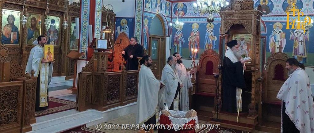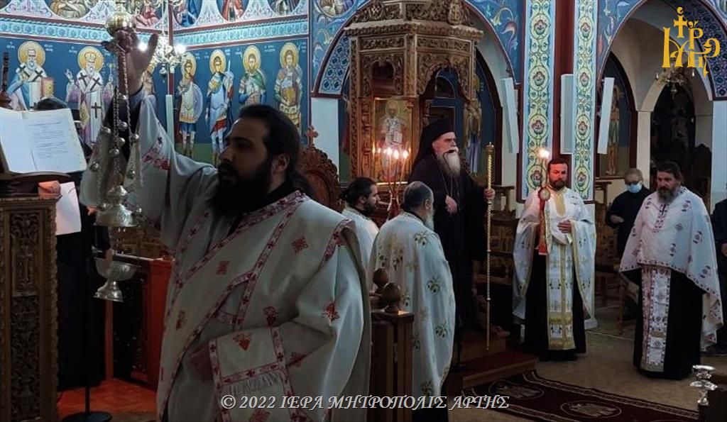 Σε Αγρυπνία που πραγματοποιήθηκε στον Ιερό Ναό του Αγίου Μαξίμου του Γραικού Άρτης, την Δευτέρα προς Τρίτη (24-25/1/2022), ετελέσθη από τον Σεβασμιώτατο Μητροπολίτη Άρτης κ. Καλλίνικο η Αρχαιοπρεπής Θεία Λειτουργία του Αγίου Γρηγορίου του Θεολόγου.