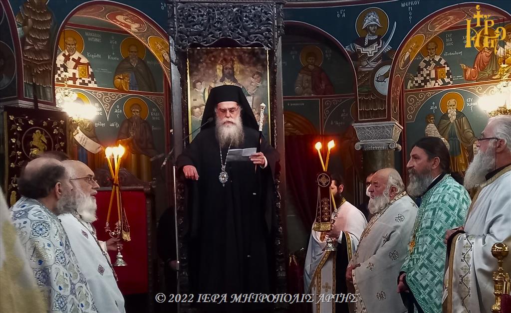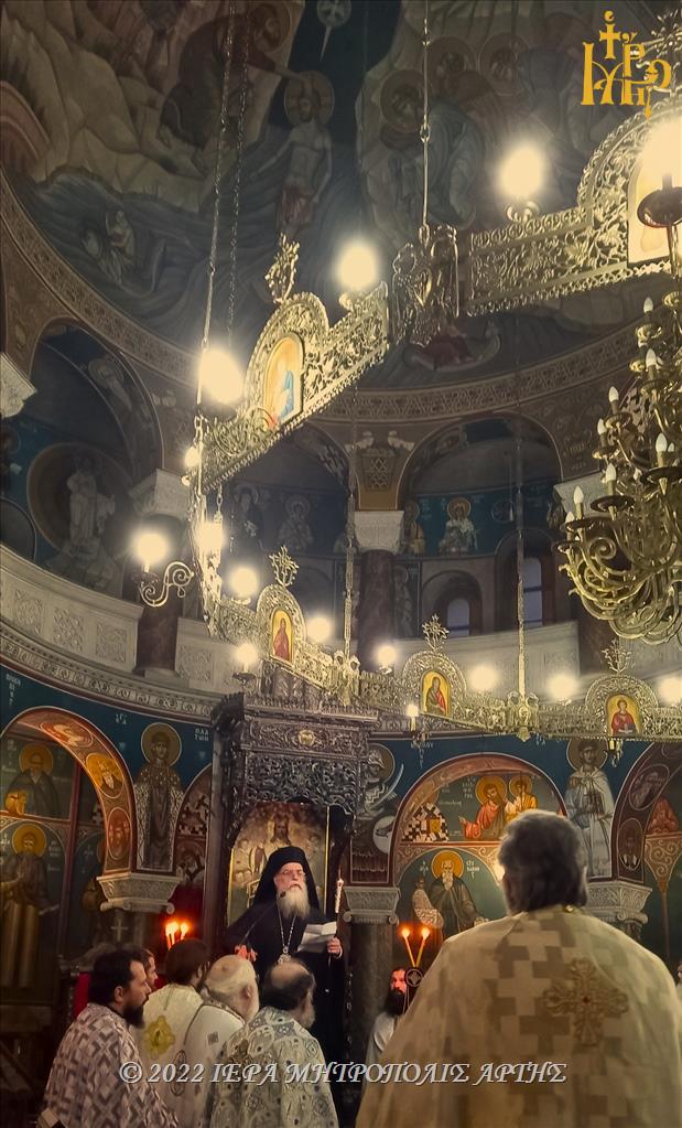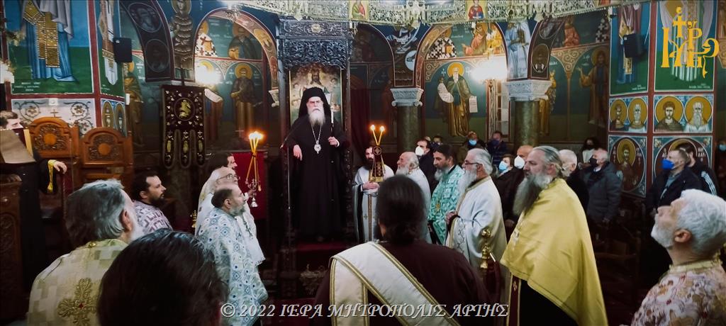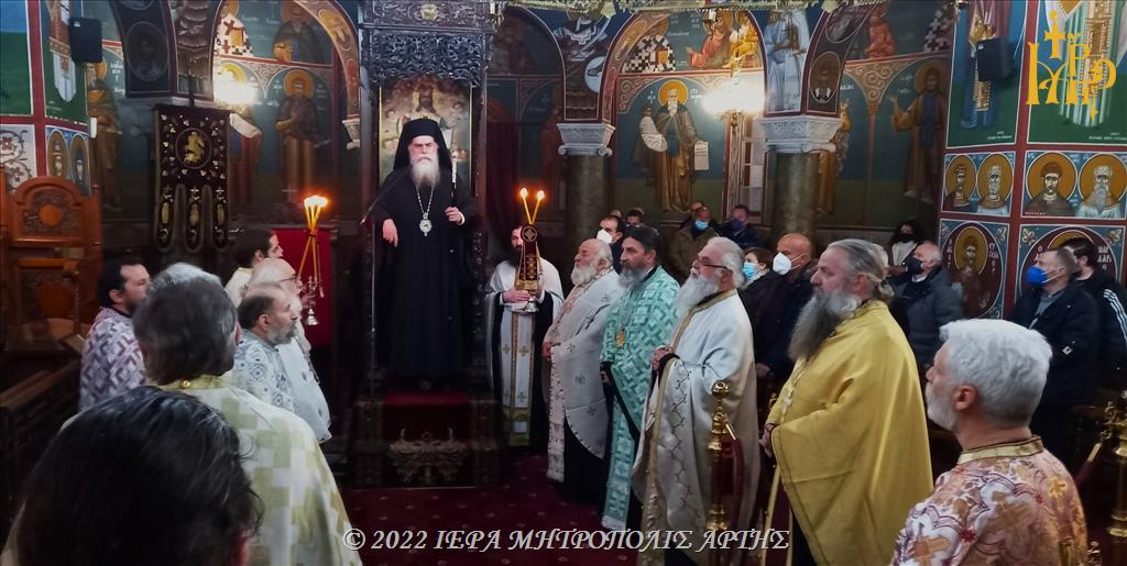 Την Κυριακή 6 Μαρτίου 2022, το απόγευμα, στον Μητροπολιτικό Ιερό Ναό του Αγίου Δημητρίου Άρτης, ο Σεβασμιώτατος Μητροπολίτης Άρτης κ. Καλλίνικος χοροστάτησε στον Α΄ Κατανυκτικό Εσπερινό.