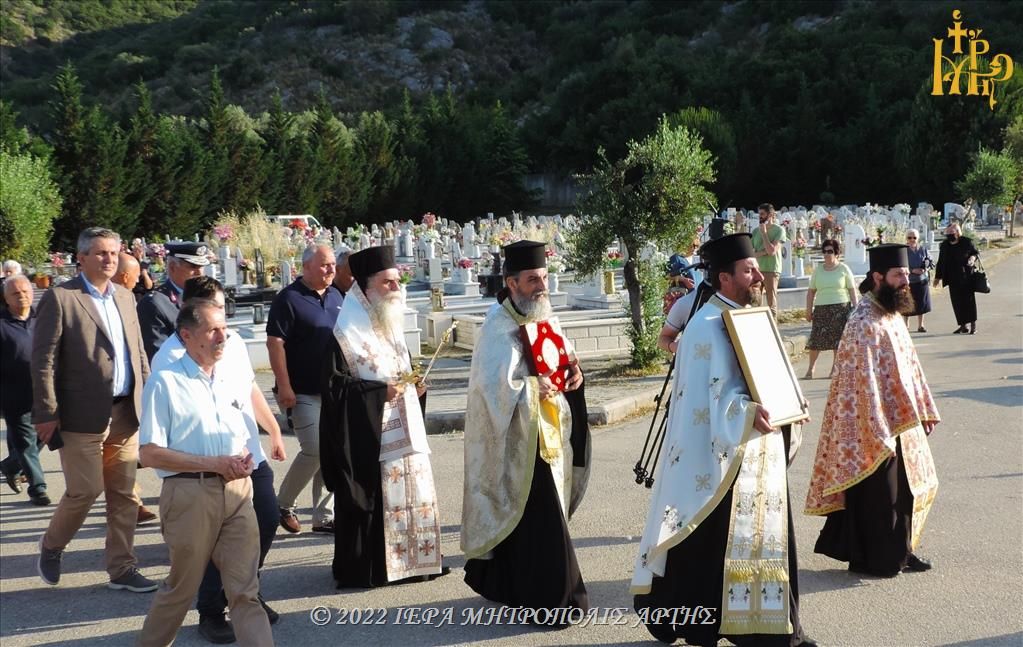 Την Τετάρτη 1 Ιουνίου 2022, το απόγευμα, στον νεοανεγειρόμενο ναό της Αναλήψεως, στο νέο κοιμητήριο της Άρτας, ετελέσθη πανηγυρικός Εσπερινός, χοροστατούντος του Σεβασμιωτάτου Μητροπολίτου Άρτης κ. Καλλινίκου.
