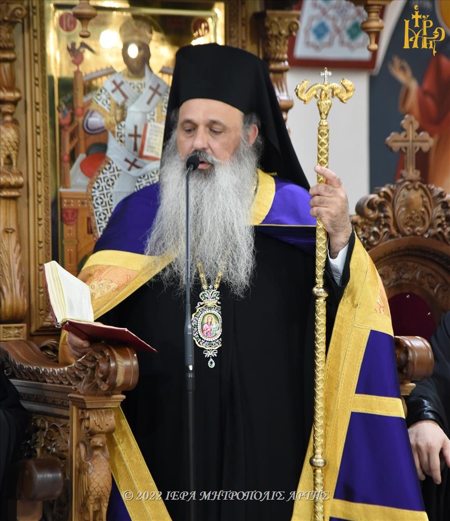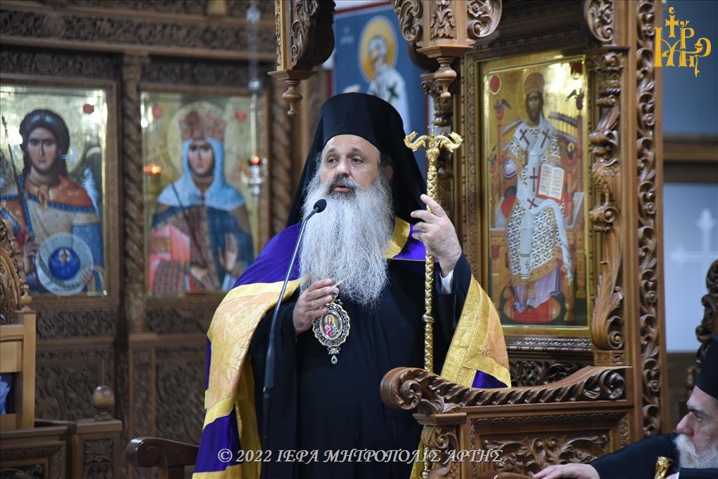 Ο Μητροπολίτης Σταγών, στην ομιλία του, αναφέρθηκε στα τάλαντα που κοσμούσαν την προσωπικότητα του Αγίου Καλλινίκου, αλλά και του εορτάζοντος Μητροπολίτη, ευχόμενος στον επιχώριο Μητροπολίτη, υγεία και μακροημέρευση κατά την άσκηση των Αρχιερατικών του καθηκόντων, προς δόξαν Θεού και ωφέλεια του ποιμνίου της Άρτας.