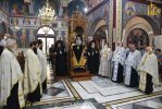 Πλήθος πιστών συνέρρευσε στον Ιερό Ναό, προκειμένου να συμμετάσχει στον Εσπερινό, να προσκυνήσει το Ιερό Λείψανο του Αγίου, αλλά και να ευχηθεί τα δέοντα στον εορτάζοντα Μητροπολίτη.