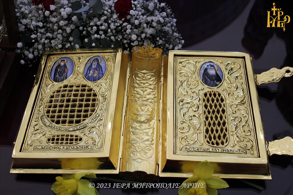 Την Τετάρτη 15 Φεβρουαρίου 2023, το απόγευμα, ο Σεβασμιώτατος Μητροπολίτης Αργολίδος κ. Νεκτάριος, εκόμισε προς προσκύνηση, στον ενοριακό Ιερό Ναό του Αγίου Μαξίμου του Γραικού στην πόλη της Άρτας, Ιερά Λείψανα νεοφανών Αγίων και συγκεκριμένα του Αγίου Λουκά του Ιατρού, του Αγίου Αρσενίου του Καππαδόκου, του Αγίου Νεκταρίου Αιγίνης, του Οσίου Εφραίμ του Κατουνακιώτου, του Αγίου Νικηφόρου του Λεπρού, καθώς και του μακαριστού πατρός Αθανασίου του Χαμακιώτου.