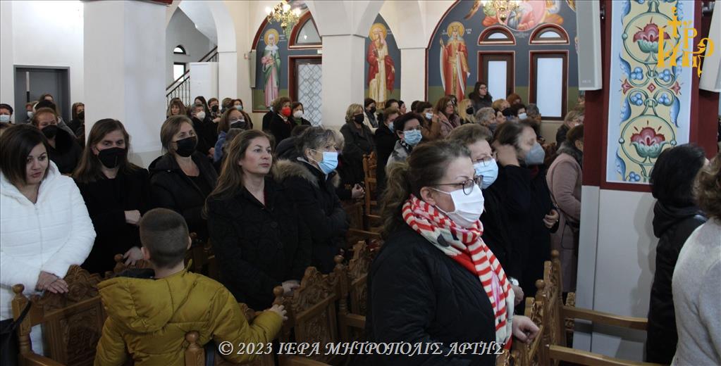 Ο Σεβασμιώτατος Μητροπολίτης Άρτης κ. Καλλίνικος υπεδέχθη τα Άγια Λείψανα στα προπύλαια του Ναού και ακολούθως, ετελέσθη το Μυστήριο του Ιερού Ευχελαίου.