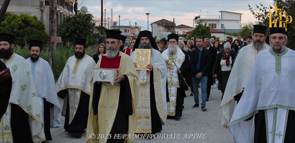 Την Πέμπτη της Διακαινησίμου, 20 Απριλίου 2023, το απόγευμα, στον πανηγυρίζοντα Ιερό Ναό Ζωοδόχου Πηγής Συκεών Άρτης, ετελέσθη Μέγας Εσπερινός χοροστατούντος του Σεβασμιωτάτου Μητροπολίτου Άρτης κ. Καλλινίκου.