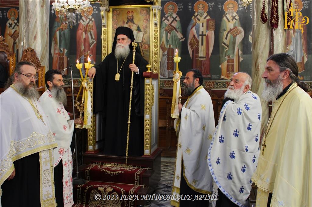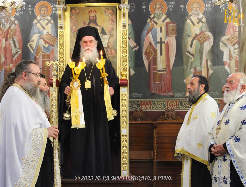 Την Δευτέρα του Αγίου Πνεύματος, 5 Ιουνίου 2023, το απόγευμα, στον ενοριακό Ιερό Ναό του Αγίου Γεωργίου, στην πόλη της Άρτας, ετελέσθη μεθέορτος Εσπερινός, χοροστατούντος του Σεβασμιωτάτου Μητροπολίτου Άρτης κ. Καλλινίκου.