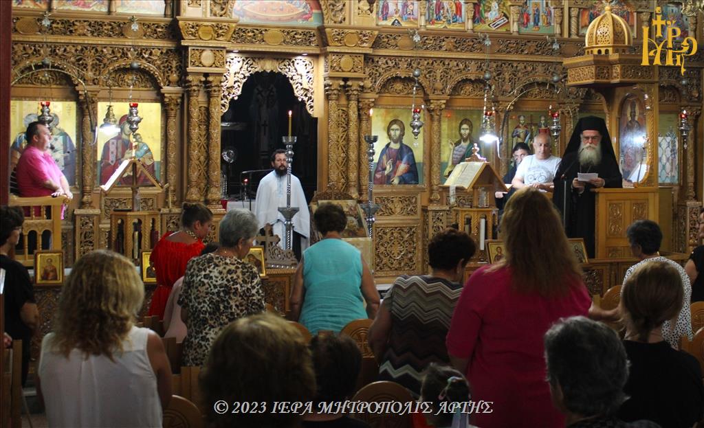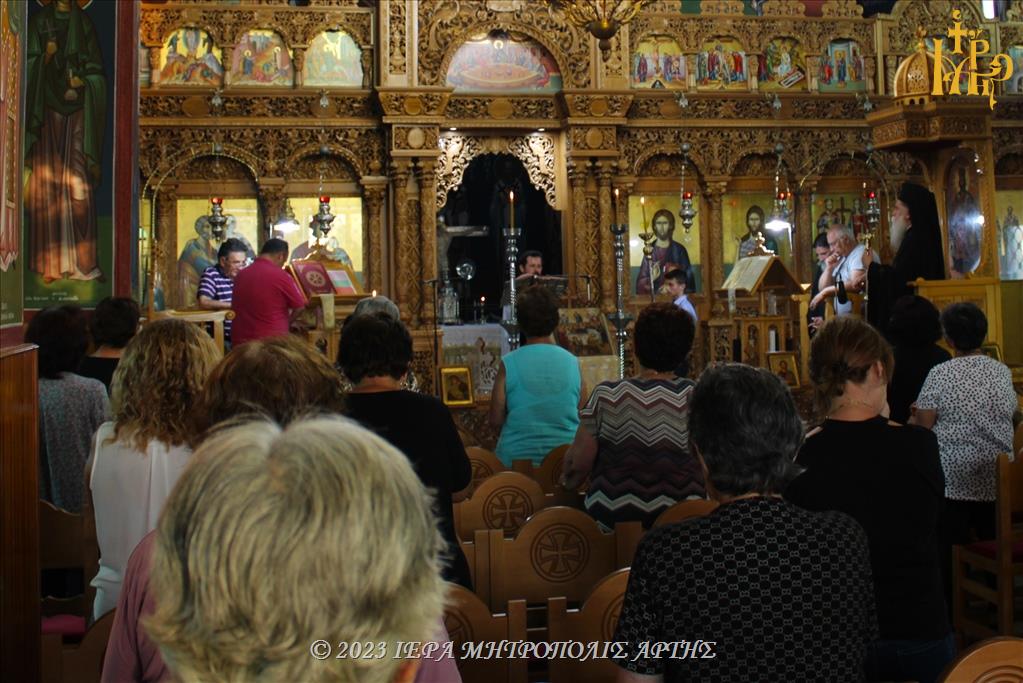 Την Παρασκευή 4 Αυγούστου 2023, το απόγευμα, στον ενοριακό Ιερό Ναό των Πρωτοκορυφαίων Αποστόλων Πέτρου και Παύλου στο μαρτυρικό χωριό Κομμένο Άρτης, εψάλη ο Μέγας Παρακλητικός Κανών προς την Υπεραγία Θεοτόκο, χοροστατούντος του Σεβασμιωτάτου Μητροπολίτου Άρτης κ. Καλλινίκου.