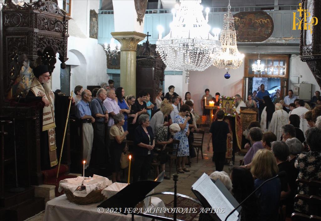 Το Σάββατο 16 Σεπτεμβρίου 2023, το απόγευμα, στον πανηγυρίζοντα Ιερό Ναό της Αγίας Σοφίας στην πόλη της Άρτας, ετελέσθη Μέγας Εσπερινός, χοροστατούντος του Σεβασμιωτάτου Μητροπολίτου Άρτης κ. Καλλινίκου.