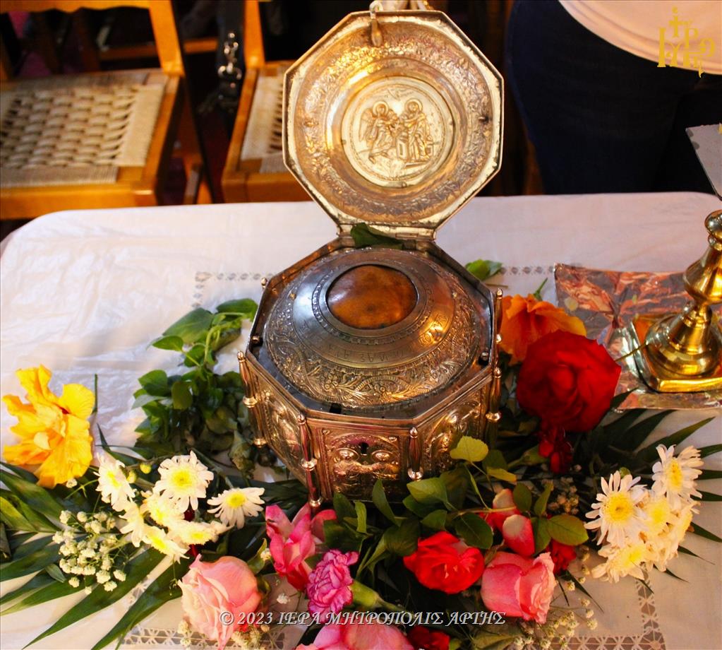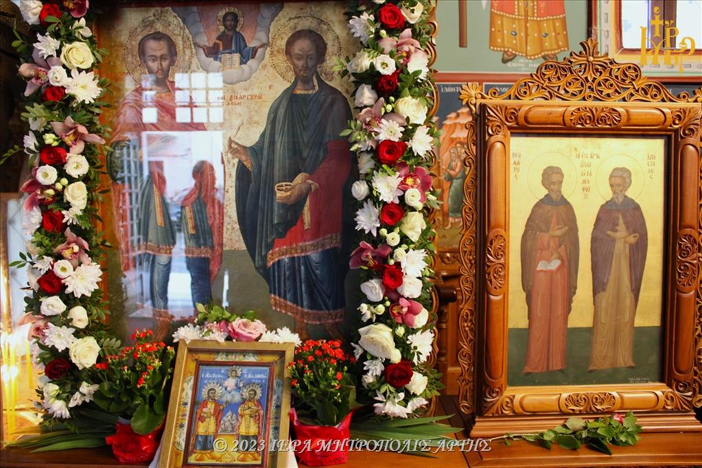 Την Τετάρτη 1 Νοεμβρίου 2023, το πρωΐ, στο εν Άρτη πανηγυρίζον επ' ονόματι των Αγίων Αναργύρων Κοσμά και Δαμιανού, Μετόχιον της Αθωνικής Ιεράς Μονής Οσίου Γρηγορίου, ελειτούργησε ο Σεβασμιώτατος Μητροπολίτης Άρτης κ. Καλλίνικος.