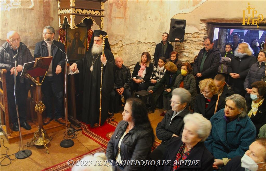 Την Κυριακή 31 Δεκεμβρίου 2023, το απόγευμα, στον πανηγυρίζοντα βυζαντινό Ιερό Ναό του Αγίου Βασιλείου, της πόλεως Άρτης, ετελέσθη Μέγας Εσπερινός, χοροστατούντος του Σεβασμιωτάτου Μητροπολίτου Άρτης κ. Καλλινίκου.