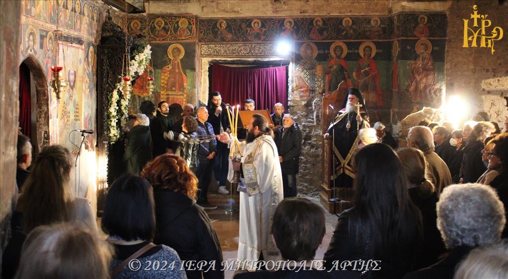 Το απόγευμα της Κυριακής, 24ης Μαρτίου 2024, στον πανηγυρίζοντα βυζαντινό Ναό της Παρηγορήτισσας, στην Άρτα, ο Σεβασμιώτατος Μητροπολίτης Άρτης κ. Καλλίνικος, χοροστάτησε στον Μέγα Εσπερινό.