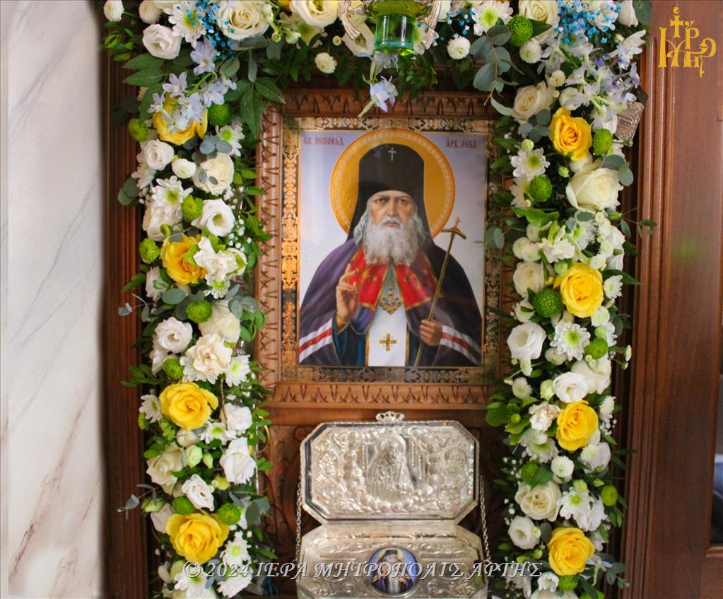Ετέθη εις προσκύνησιν απότμημα του Ιερού Λειψάνου του Αγίου Λουκά Αρχιεπισκόπου Συμφερουπόλεως και Κριμαίας του Ιατρού, το οποίο, το έτος 2018, εδώρισε στην Ιερά Μητρόπολη Άρτης, ο Σεβασμιώτατος Μητροπολίτης Αργολίδος κ. Νεκτάριος.