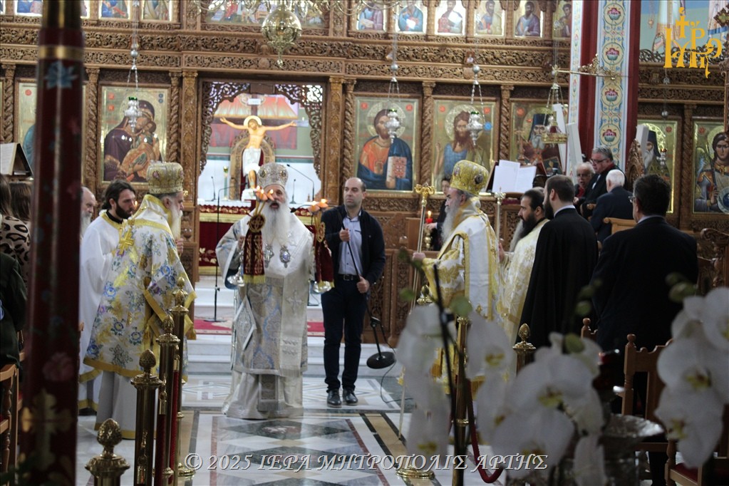 Ο Σεβασμιώτατος Μητροπολίτης Άρτης κ. Καλλίνικος, κλείνοντας τη λατρευτική σύναξη, εξέφρασε θερμές ευχαριστίες προς τους Αγίους Αρχιερείς για την παρουσία και τη συμμετοχή τους στην πανήγυρη, αλλά και προς τον πιστό λαό που με ευλάβεια και πίστη συμμετείχε στις εκδηλώσεις προς τιμήν του Αγίου.