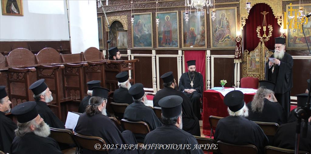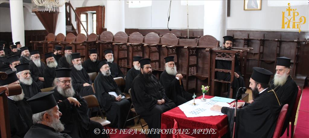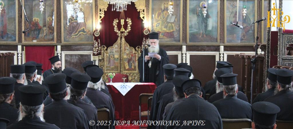 Το πρωΐ της Πέμπτης 16 Οκτωβρίου 2025, πραγματοποιήθηκε Ιερατική Σύναξη για τους Κληρικούς της Ιεράς Μητροπόλεως Άρτης, στον Ιερό Ναό Εισοδίων της Θεοτόκου - Αγίου Μερκουρίου, στο Επισκοπείο.