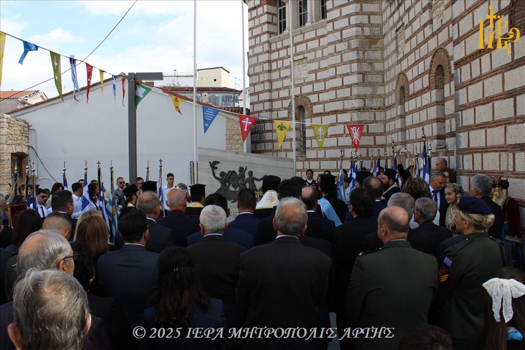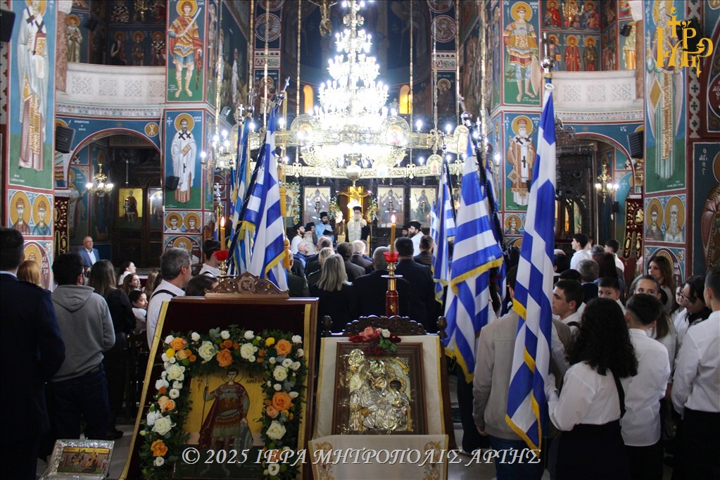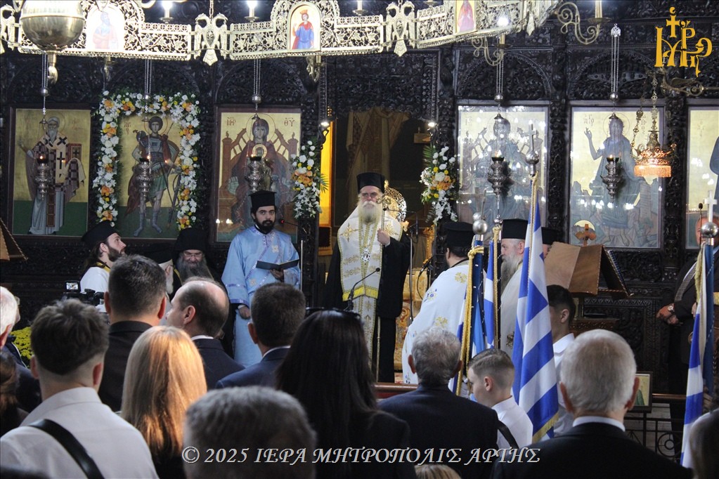 Με εθνική υπερηφάνεια, ο ευσεβής λαός της Άρτας ετίμησε τους ήρωες του 1940, ευχαριστώντας ταυτοχρόνως την Υπεραγία Θεοτόκο για την προστασία και τη σκέπη Της επί του Έθνους μας με την ευχή, ο εορτασμός της 28ης Οκτωβρίου να ενισχύει κάθε χρόνο την πίστη, την ενότητα και την ελπίδα όλων μας, ώστε, με τη χάρη του Θεού, να συνεχίζουμε να πορευόμαστε, με ευθύνη και αγάπη προς την Πατρίδα και τον συνάνθρωπο.