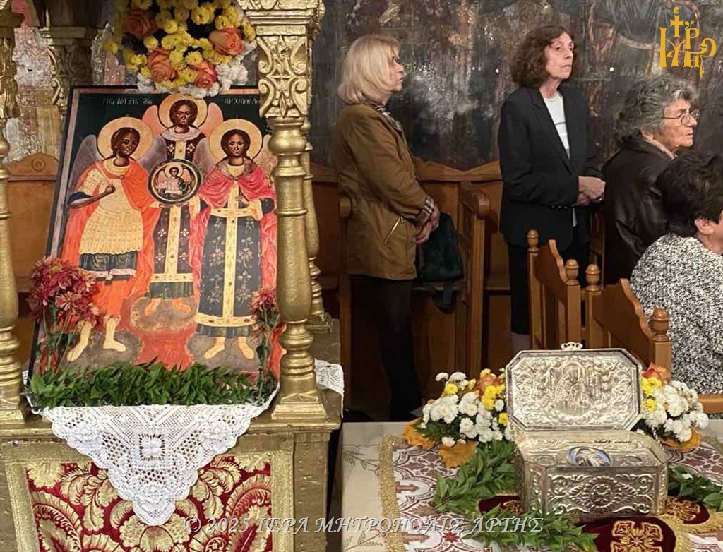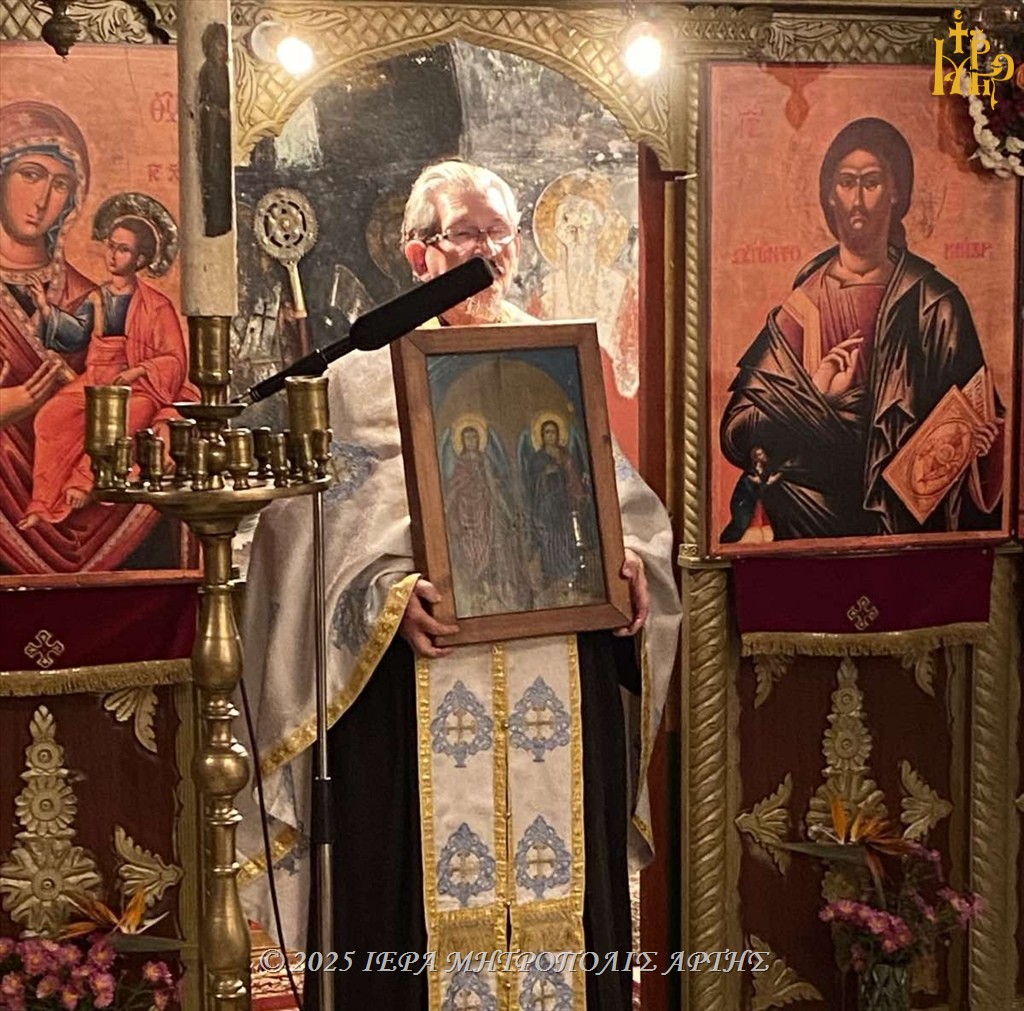 Στο πανηγυρίζον παρεκκλήσιο των Παμμεγίστων Ταξιαρχών της Ενορίας Λουτροτόπου Άρτης, το οποίο αποτελεί το Καθολικό παλαιάς Μονής, ετελέσθη, το απόγευμα της Παρασκευής 7 Νοεμβρίου 2025, Μέγας Εσπερινός. Στον Εσπερινό χοροστάτησε ο Σεβασμιώτατος Μητροπολίτης Άρτης, κ. Καλλίνικος, πλαισιωμένος από κληρικούς.