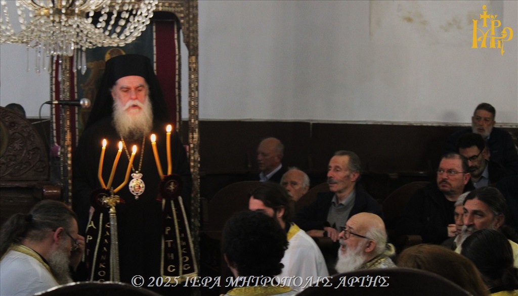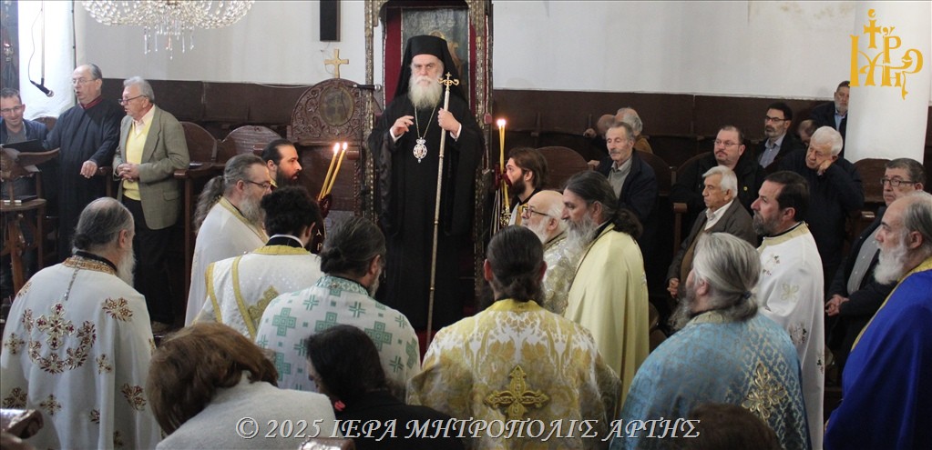 Με κατάνυξη ετελέσθη, το απόγευμα της Πέμπτης 20 Νοεμβρίου 2025, ο Μέγας Εσπερινός στο πανηγυρίζον Μητροπολιτικό Παρεκκλήσιο των Εισοδίων της Θεοτόκου, το ευρισκόμενο στον αύλειο χώρο του Επισκοπείου Άρτης. Χοροστάτησε ο Σεβασμιώτατος Μητροπολίτης Άρτης κ. Καλλίνικος, πλαισιούμενος από κληρικούς.