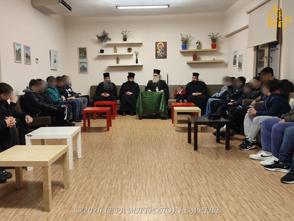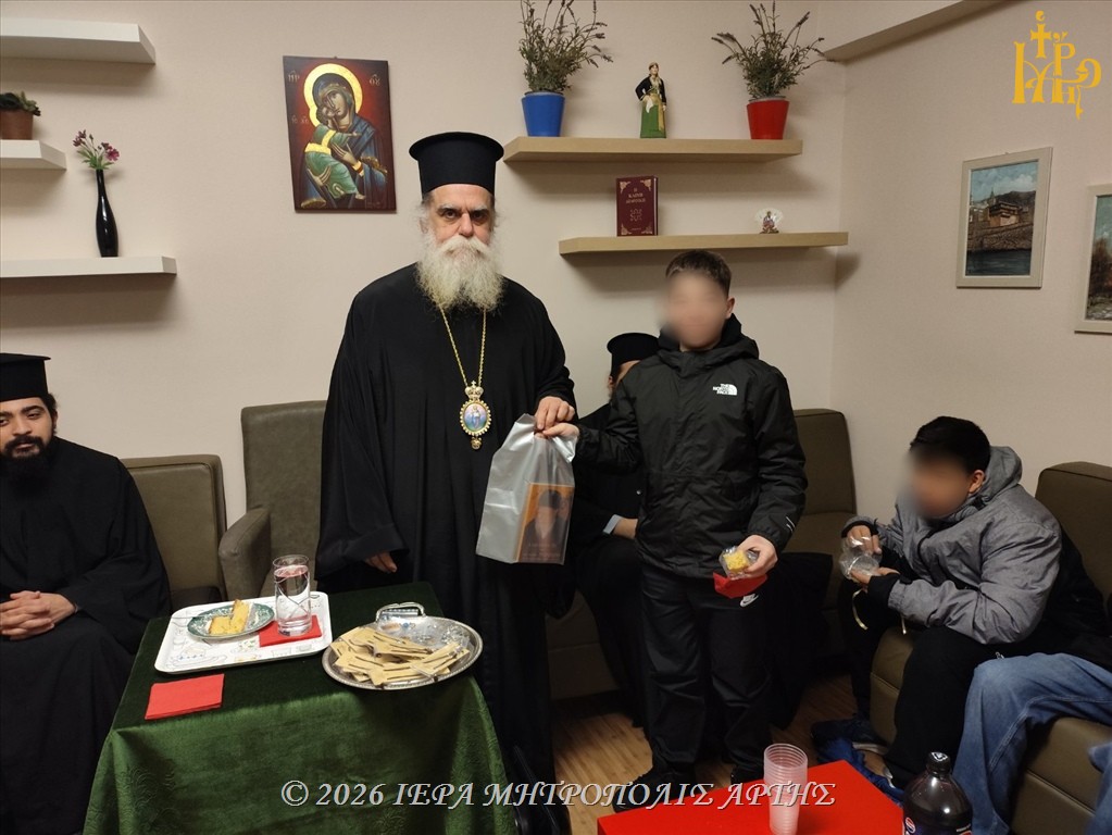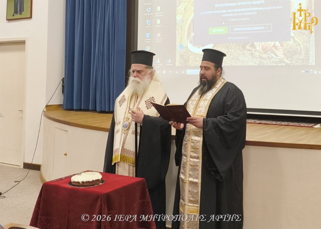 Λίγο αργότερα, ευλόγησε τη Βασιλόπιτα και του Ανωτέρου Κατηχητικού Σχολείου αρρένων της Ιεράς Μητροπόλεως Άρτης, απευθύνοντας λόγο ενθαρρυντικό προς τους μαθητές, υπογραμμίζοντας τη σημασία της ζωντανής σχέσεως με τον Χριστό μέσα στην καθημερινότητα.