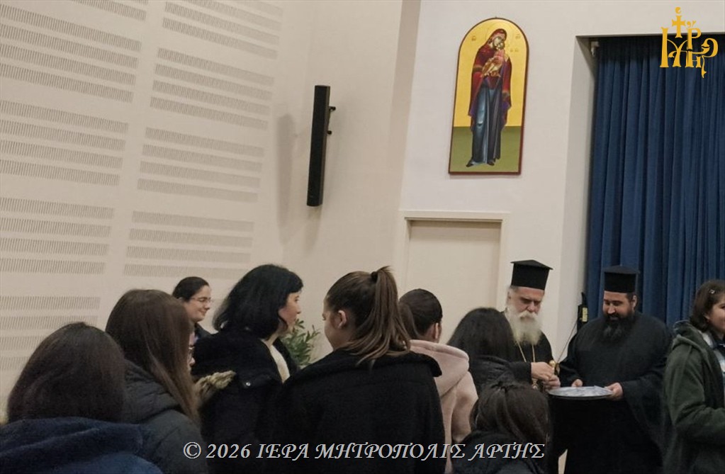 Συγκεκριμένα, στο Πνευματικό Κέντρο του Αγίου Ιωάννου του Θεολόγου, στην πόλη της Άρτας, ο Σεβασμιώτατος ευλόγησε τη Βασιλόπιτα του Ανωτέρου Κατηχητικού Σχολείου θηλέων και απηύθυνε επίκαιρη πνευματική ομιλία στις μαθήτριες, παροτρύνοντάς τες να αξιοποιούν τη νεότητά τους ως δώρο Θεού και ως ευκαιρία πνευματικής προόδου.