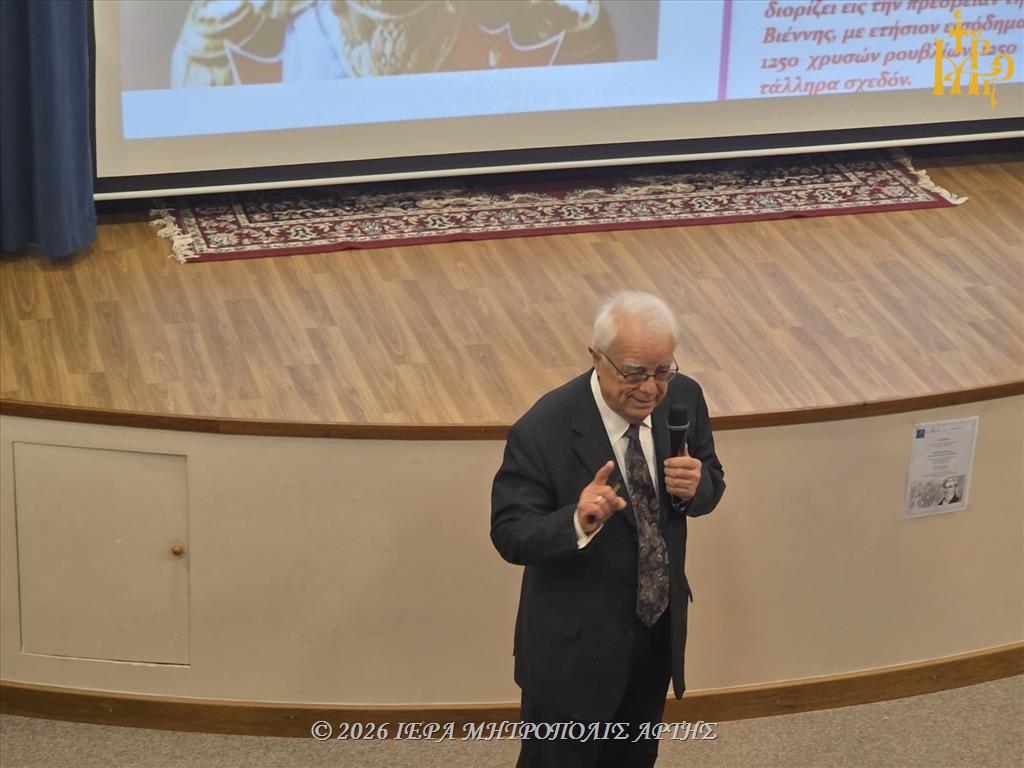 Στην εκδήλωση παρέστη και απηύθυνε χαιρετισμό και ο Σεβασμιώτατος Μητροπολίτης Άρτης κ. Καλλίνικος, ο οποίος ετόνισε τη σημασία της ιστορικής μνήμης, της παιδείας και της ανάδειξης προσωπικοτήτων που με το ήθος και το έργο τους ανεδείχθησαν φωτεινά παραδείγματα προσφοράς προς την πατρίδα.