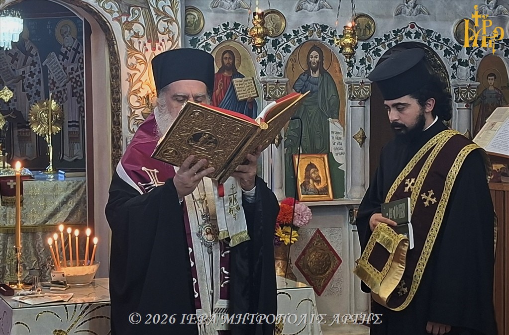 Το εσπέρας της Μεγάλης Τετάρτης, 8 Απριλίου 2026, στον Ιερό Ναό Αγίου Γεωργίου στον συνοικισμό Περδικορράχη Κλειδίου Άρτας, ετελέσθη το Μυστήριο του Ιερού Ευχελαίου και η Ακολουθία του Ιερού Νιπτήρος, από τον Σεβασμιώτατο Μητροπολίτη Άρτης κ. Καλλίνικο, με τη συμμετοχή πιστών.