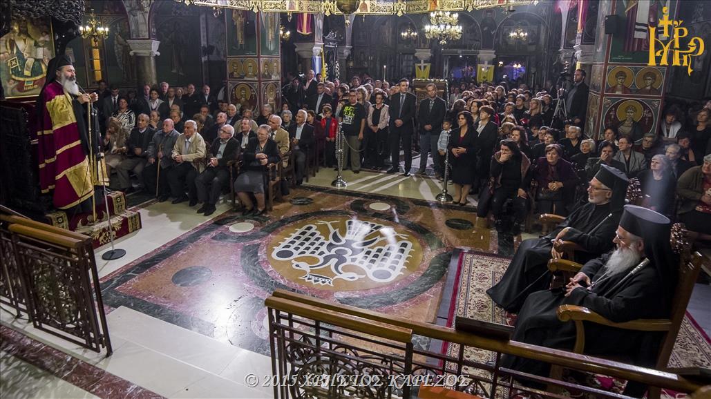 Προεξάρχοντος του νεοεκλεγέντος Μητροπολίτου Κεφαλληνίας κ. Δημητρίου και συγχοροστατούντων των: Σεβασμιωτάτου Μητροπολίτου Τορόντο κ. Σωτηρίου και του Σεβασμιωτάτου Ποιμενάρχου μας κ. Ιγνατίου, τελέσθηκε με θρησκευτική μεγαλοπρέπεια ο πανηγυρικός Εσπερινός του Αγίου Μεγαλομάρτυρος Δημητρίου του Μυροβλύτου στον φερώνυμο Ιερό Μητροπολιτικό Ναό στην Άρτα.