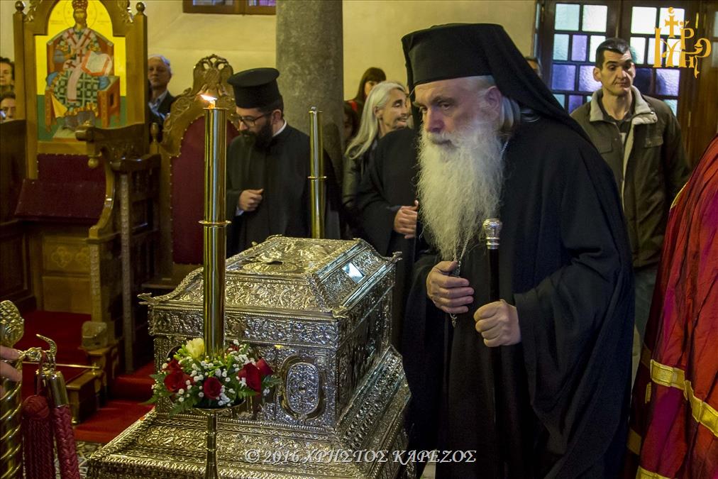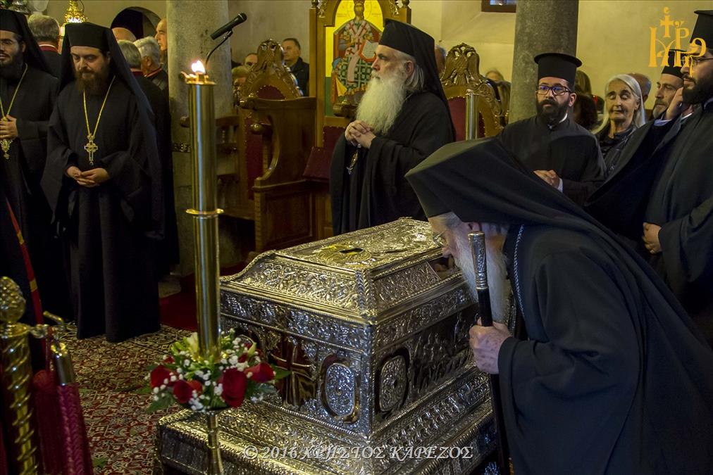 Το απόγευμα της Πέμπτης, χοροστατούντος του Σεβασμιωτάτου Μητροπολίτου Νέας Κρήνης και Καλαμαριάς κ. Ιουστίνου και συγχοροστατούντων του Σεβασμιωτάτου Μητροπολίτου Αργολίδος κ. Νεκταρίου και του Σεβασμιωτάτου Ποιμενάρχου μας κ. Ιγνατίου, εψάλη η Ακολουθία του Εσπερινού. Ο χοροστατών Μητροπολίτης δεν έκρυψε την συγκίνησή του που ως νέος Ιεράρχης της Ελλαδικής Εκκλησίας, στο ξεκίνημα της Αρχιερατικής του πορείας και διακονίας, η Χάρις του Θεού τον έφερε προσκυνητή στη μνήμη της Αγίας Θεοδώρας, της Βασίλισσας με τον πολυτάραχο και πλούσιο σε πνευματικά μηνύματα βίο, στον οποίο και αναφέρθηκε επιγραμματικά. Ευχαρίστησε δε το Σεβασμιώτατο Ποιμενάρχη μας δια την αγάπη και τιμή που του έκανε να είναι μέτοχος της λαμπρής πανηγύρεως, σε μια Μητρόπολη που αγαπά και έχει δεθεί ιδιαιτέρως κατά το παρελθόν τόσο με τους Κληρικούς όσο και με τον ευσεβή λαό της.