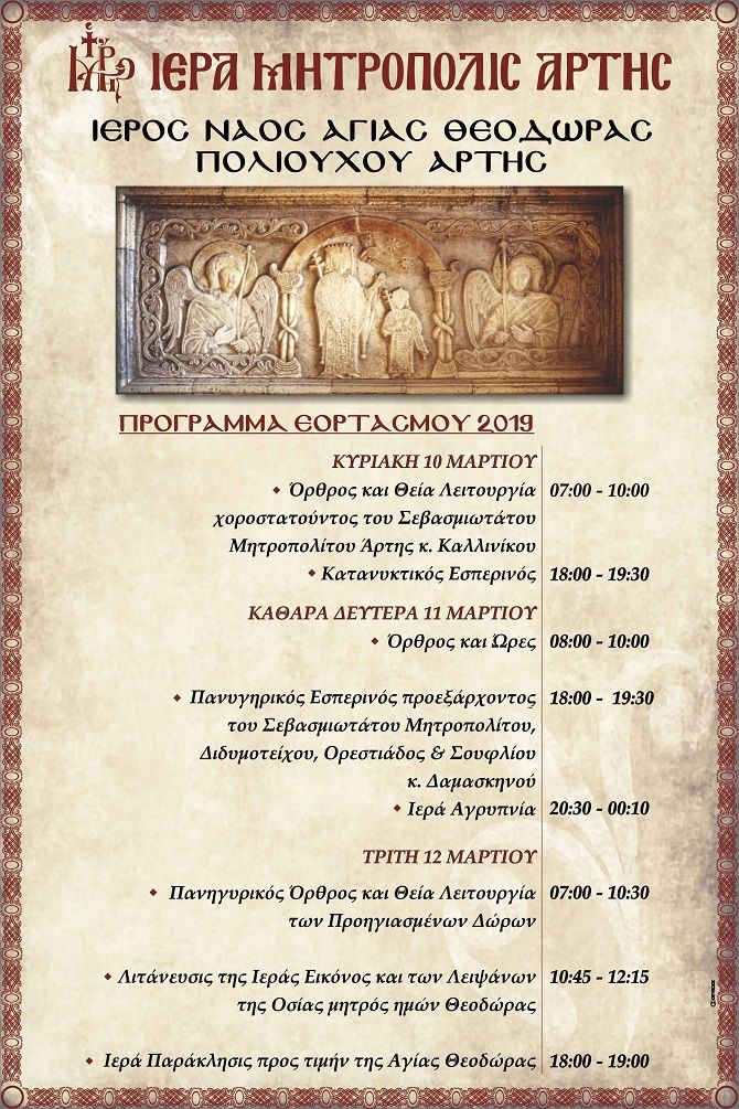 Πρόγραμμα Πανηγύρεως Αγίας Θεοδώρας 2019