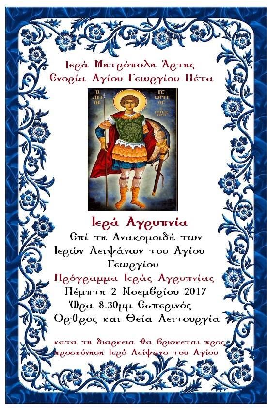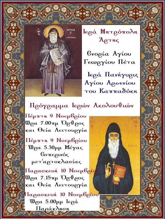 Εορτή Αγίου Πορφυρίου στον Ι.Ν. Αγίου Μαξίμου του Γραικού Άρτης