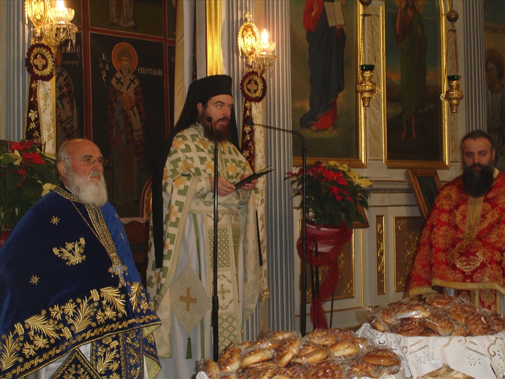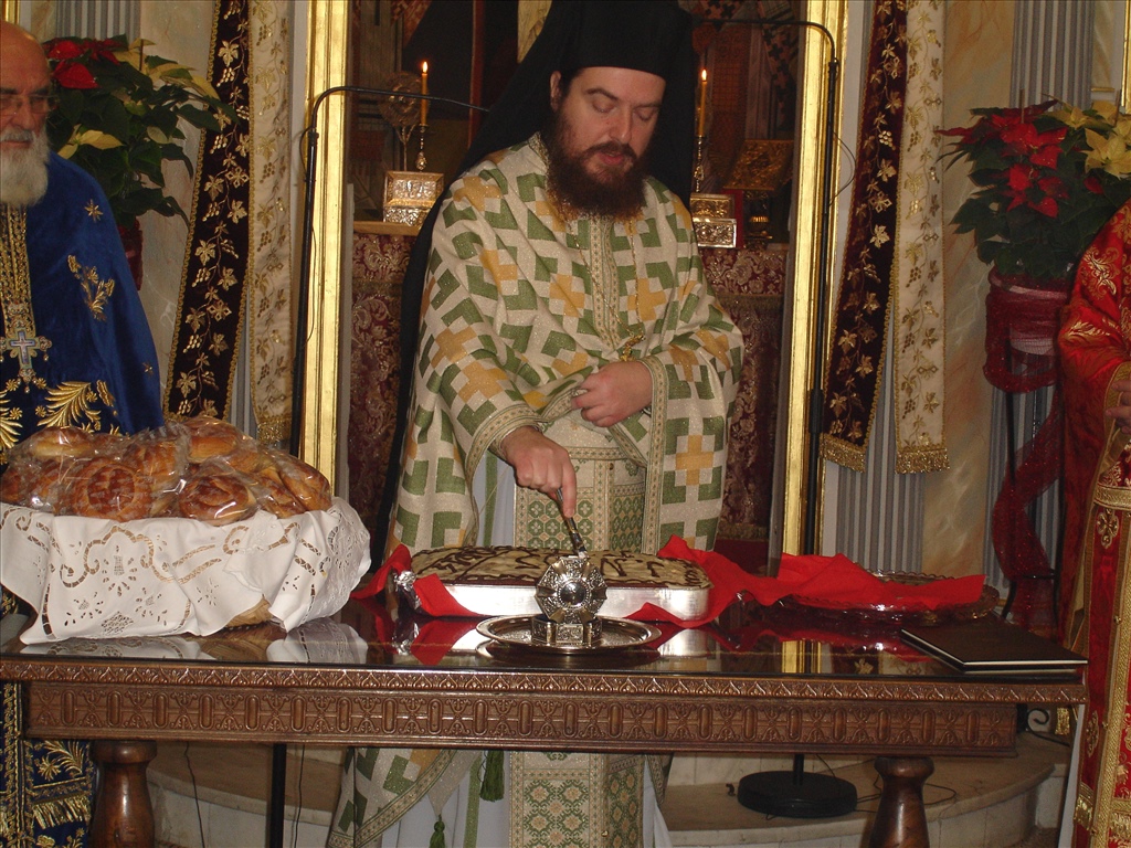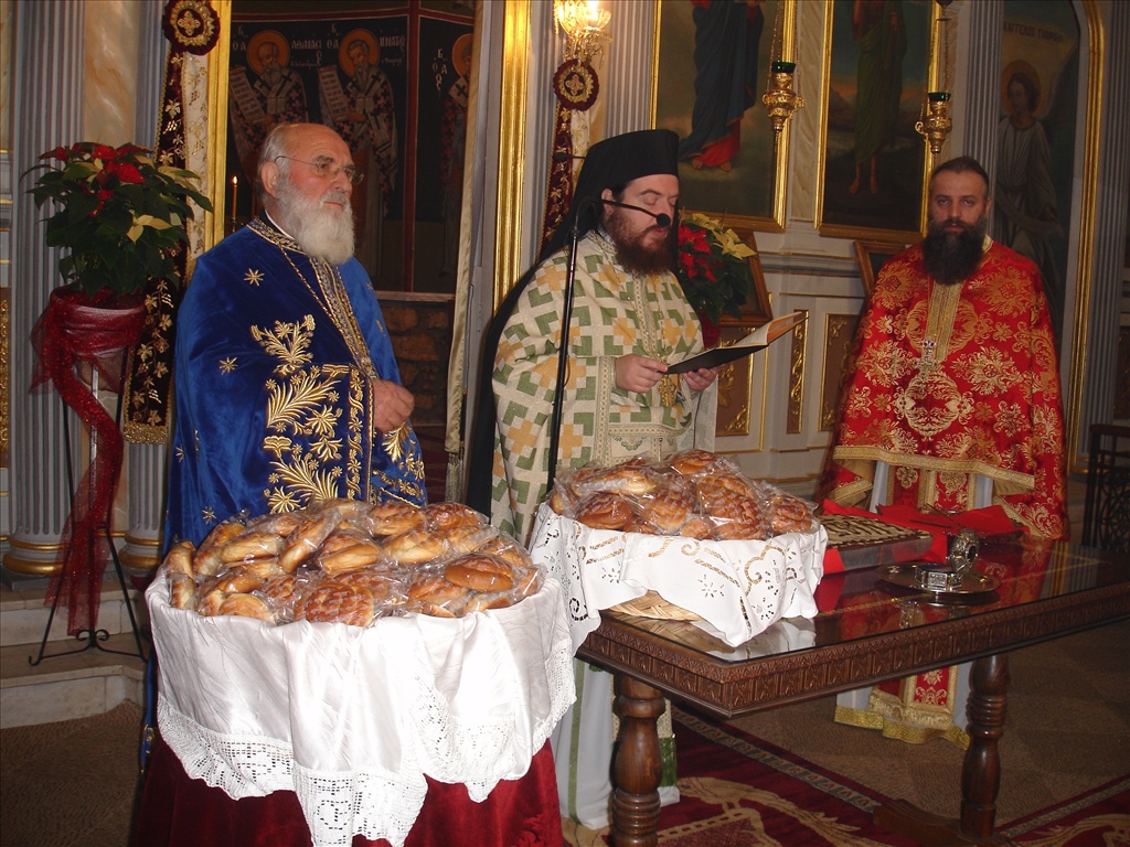 Στο τέλος της Θείας Λειτουργίας εψάλη η Δοξολογία για το νέο έτος και κόπηκε η πρωτοχρονιάτικη βασιλόπιτα της ενορίας. Ο Πρωτοσύγκελλος π. Θεολόγος ευχόμενος για τη νέα χρονιά, προς τους εφημερίους του Ιερού Ναού και τον ευσεβή λαό, χαρακτήρισε την είσοδο σε κάθε νέο έτος ως μία επιπλέον ευκαιρία που δίνει στον καθένα μας ο Πανάγαθος Θεός προκειμένου να βελτιωθούμε πνευματικά διορθώνοντας τα λάθη μας, ζώντας ζωή μετανοίας.