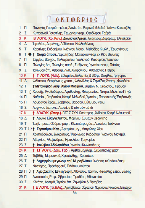 Ημερολόγιο 2021
